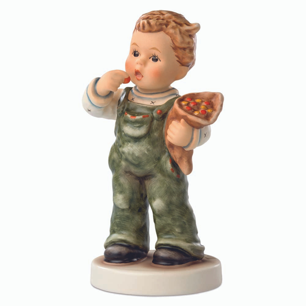 A Sweet Taste of Childhood Nostalgia Step back into the colorful world of childhood treats with Candy Cutie (HUM 2341). This adorable little fellow invites you to relive the simple joy of visiting a bustling German market or a vibrant carnival. In his hand, he carefully holds a traditional paper cone, or "Zuckertüte," filled with a delicious scoop of candy—a classic sight in German culture often associated with special celebrations and school milestones.